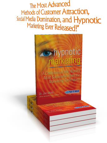 "Do what 'Hypnotic Marketing' says and you will get rich! It's simply brilliant! I learn something that increases my bottom line profits every time I read Joe Vitale. 'Hypnotic Marketing' is an ENCYCLOPEDIA of specific laser beam strategies of how to market your business NOW. Trust me. I know. The last time I used just ONE of Joe Vitale's ideas in a marketing plan I earned $12,865 in one DAY! (That's just one idea! )" -- Kevin Hogan, Author, The Psychology of Persuasion, KevinHogan.com |